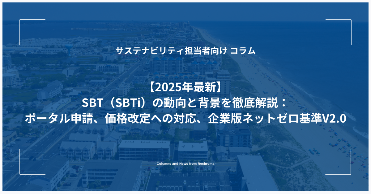 - 【2025年最新】SBT(SBTi)の動向と背景を徹底解説:ポータル申請、価格改定への対応、企業版ネットゼロ基準V2.0Last Updated on 2025年12月2日 by Moe Yamazaki 【気候変動関連用語がまるわかり!用語集はこちら】 SBTi(Science Based Targets initiative)によると […]
