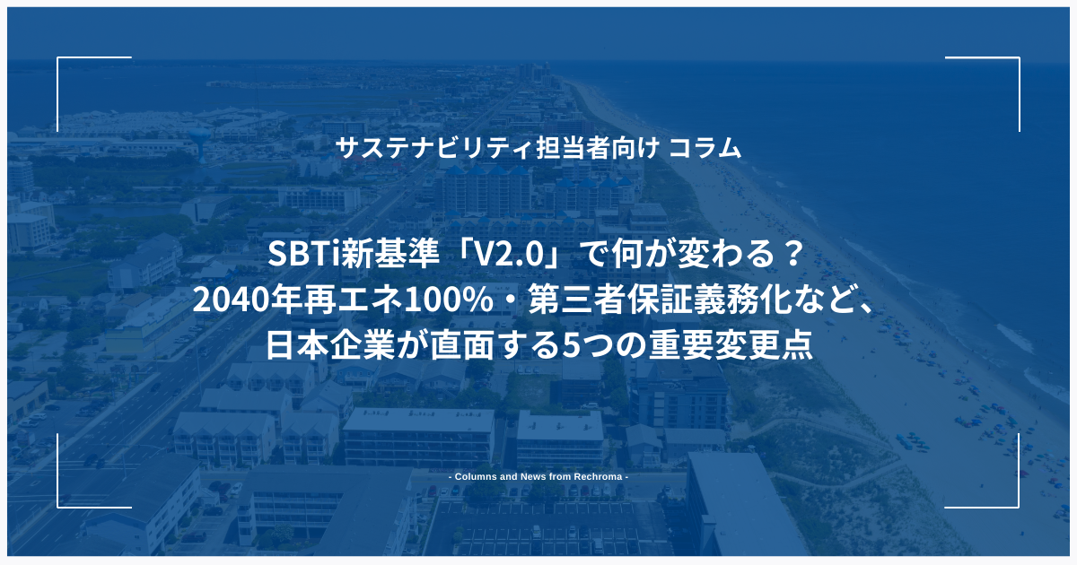 - SBTi新基準「V2.0」で何が変わる? 2040年再エネ100%・第三者保証義務化など、日本企業が直面する5つの重要変更点Last Updated on 2025年12月3日 by Moe Yamazaki 【気候変動関連用語がまるわかり!用語集はこちら】 SBTi 企業版ネットゼロ基準 V2.0(第2次ドラフト)徹底解説|厳格化する要件と […]