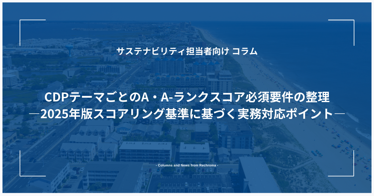 - CDPテーマごとのA・A-ランクスコア必須要件の整理―2025年版スコアリング基準に基づく実務対応ポイント―【気候変動関連用語がまるわかり!用語集はこちら】 CDPは2025年版スコアリング基準において、各ランク(A~D)に到達するための必須要件(Essential Criteria)を、森林(Forests)、水(Water […]