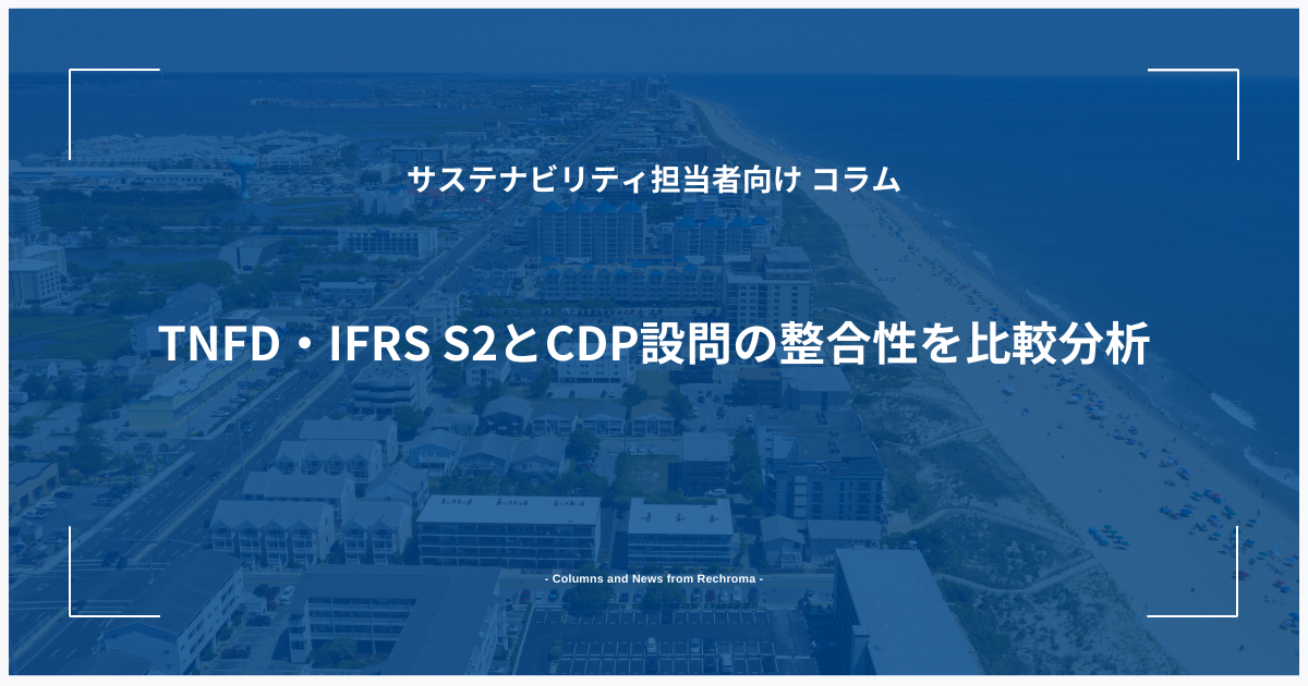 - TNFD・IFRS S2とCDP設問の整合性を比較分析【気候変動関連用語がまるわかり!用語集はこちら】 サステナビリティ情報開示は、国際基準の整備が進むなか、大きな転換点を迎えています。 自然関連財務情報開示タスクフォース(TNFD)および国際サステナビリティ基準審議会(I […]