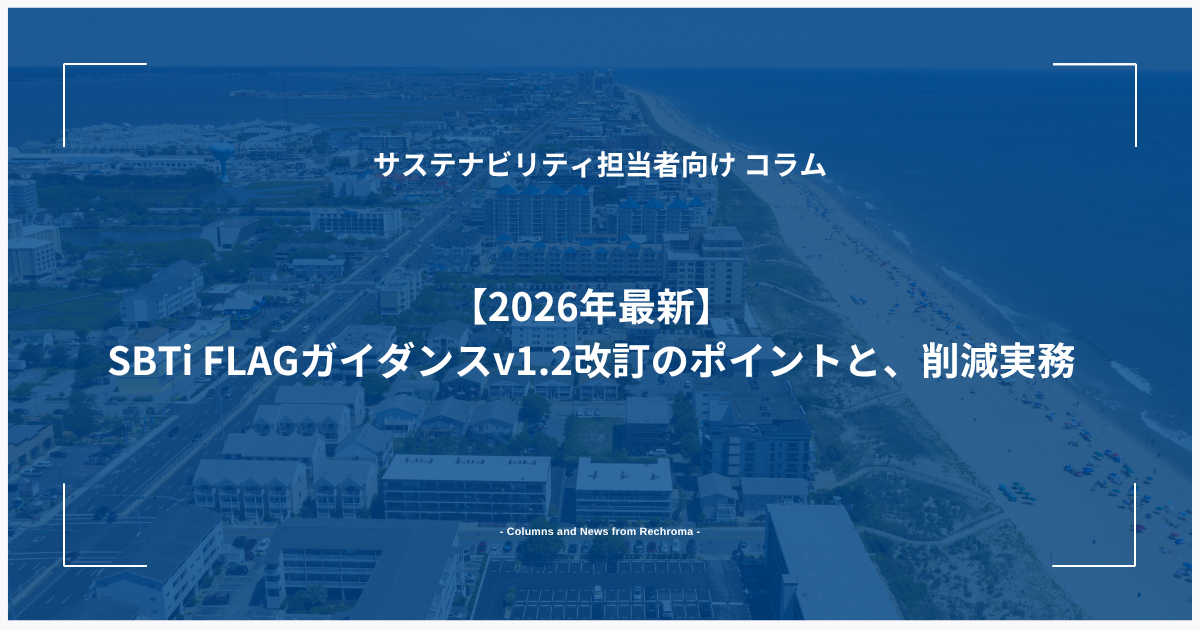 - 【2026年最新】SBTi FLAGガイダンスv1.2改訂のポイントと、削減実務Last Updated on 2026年4月9日 by Moe Yamazaki 【気候変動関連用語がまるわかり!用語集はこちら】 世界的な気候変動対策が加速する中、食品や農業、製紙・パルプ関連の企業にとって避けては通 […]