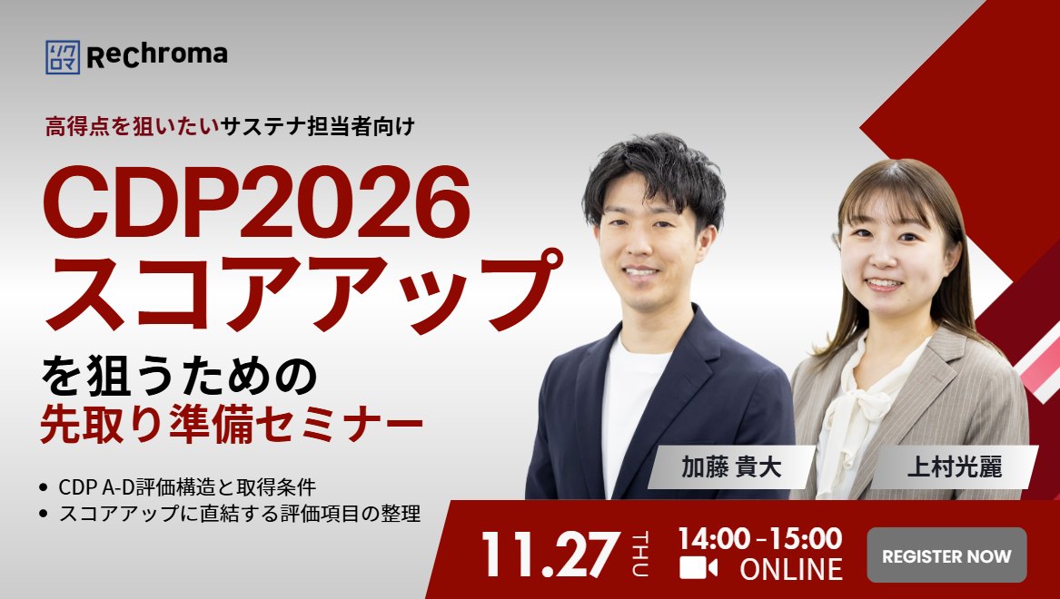 そこで今回は、CDP2026に向けてスコアアップを目指す方向けに特化したセミナーを実施します。CDP2025の提出後、ほっと一息つかれている方も多いかと思いますが、スコアアップを狙うには「提出後の今こそ」が最も重要なタイミングです。
